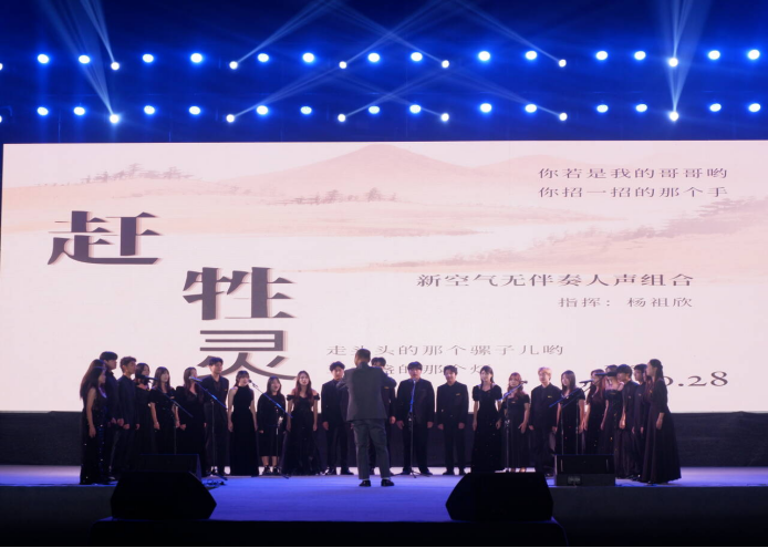 比赛现场,《鸿雁》的悠扬旋律、《北京的金山上》的经典传唱、《吉祥坐席》的民族风情轮番上演;师范学院党总支带来的《吉祥坐席》以多声部合唱展现藏族音乐特色;国际学院Rainbow合唱团的《穿林响》融合了民族韵律与青春活力;艺术学院新空气合唱团的《赶牲灵》则将陕北民歌的质朴与豪迈演绎得淋漓尽致。从经典红歌到民族小调等15支民族歌曲生动展现,选手们用歌声串联起不同民族的文化记忆,让现场师生在旋律中感受各民族文化的交融共生。
