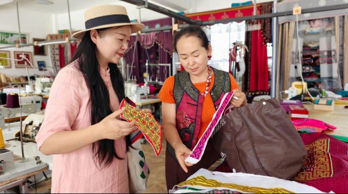 据悉,殷海霞还以拼布绣为媒介积极致力于民族团结工作。她带出的徒弟毕业后成为贵州的非遗传承人,成为当地的非遗文创主力。今年8月,殷海霞参加省妇联组织的“鄂疆姐妹一家亲·‘三送’携手共前行”主题考察交流活动,为阿拉山口市的妇女姐妹们开展手工技艺培训,与温泉县巾帼民族工艺专业合作社的乌云吉尔格丽达成深度合作意向,共同描绘民族团结的美丽画卷!(校党委统战部、艺术学院供稿)